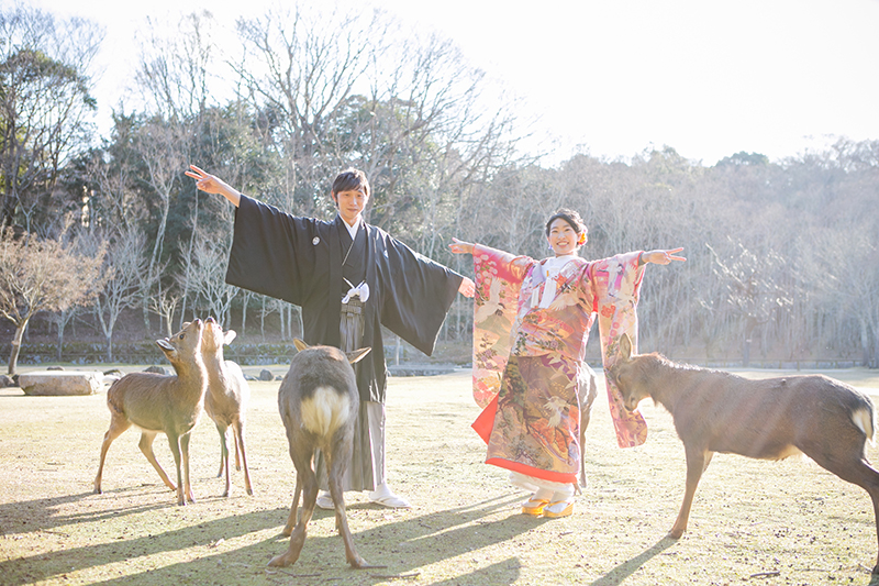 奈良らしい鹿さんとのお写真まで