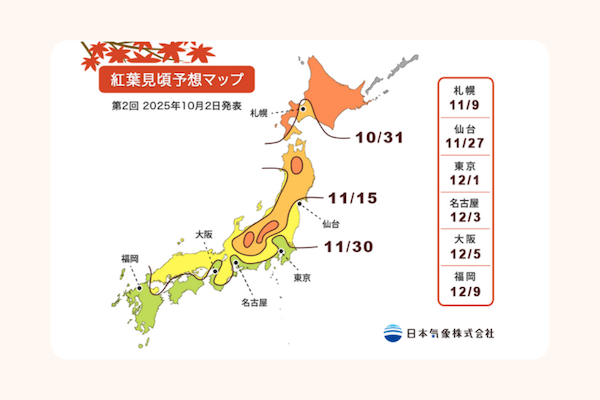 日本気象株式会社が公開されている紅葉予測だと