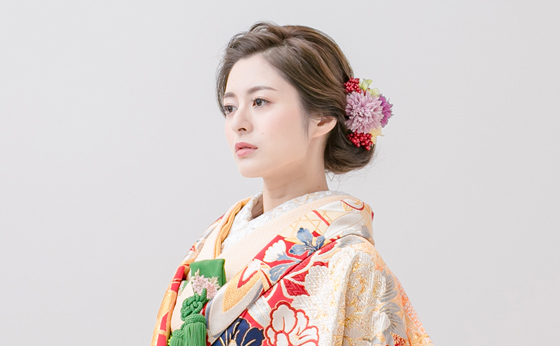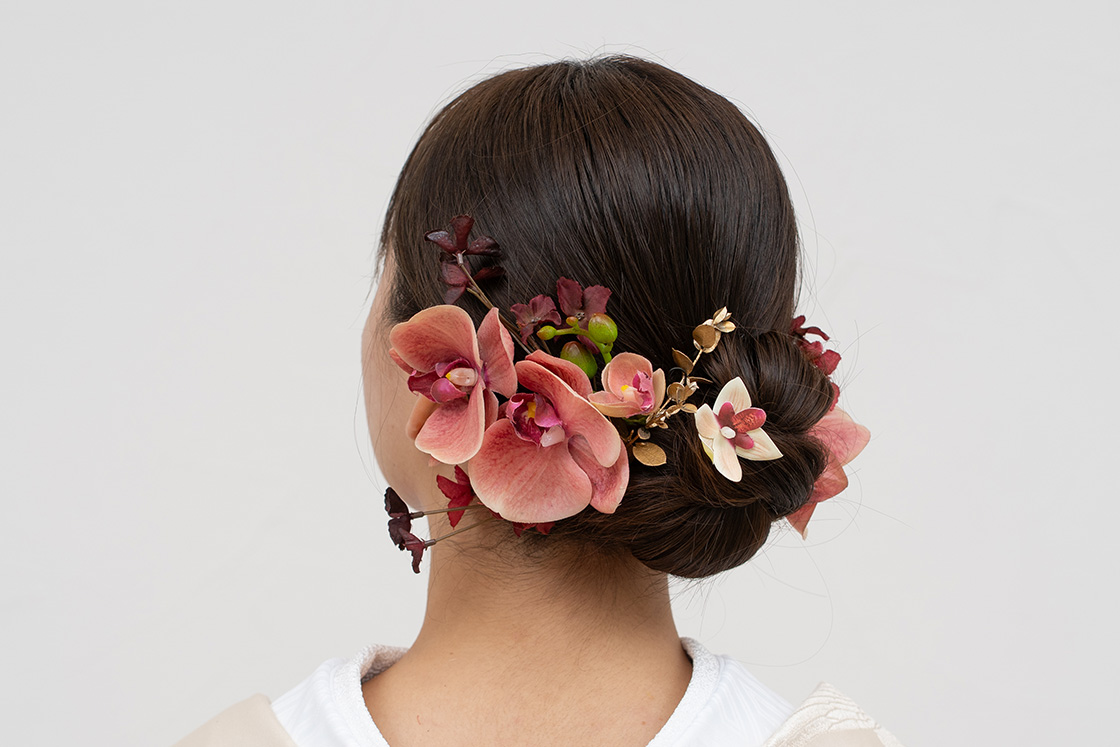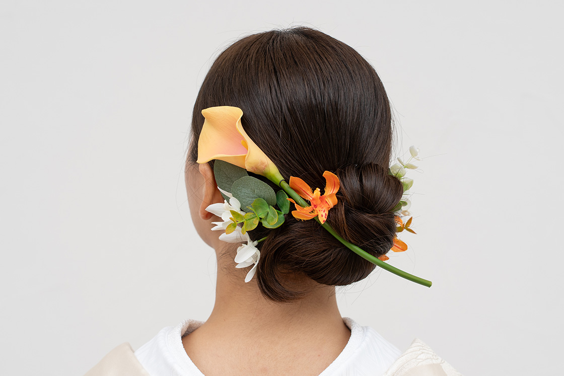 着物の色や柄に合わせた和花モチーフや和装をモダンに彩る淡いカラーもオススメ♪小花を散りばめたアレンジも人気です!