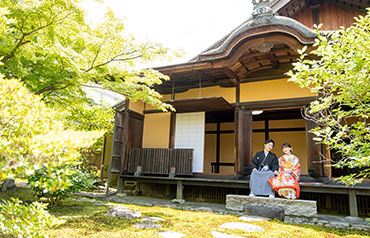 日本建築の美しさが再発見できる貴重な建物。和室・お庭でも撮影することができ、雨でも撮影可能です。