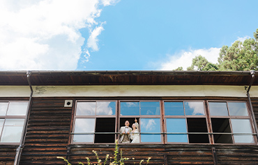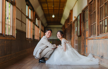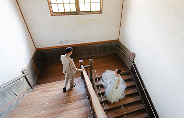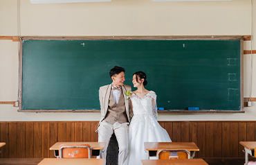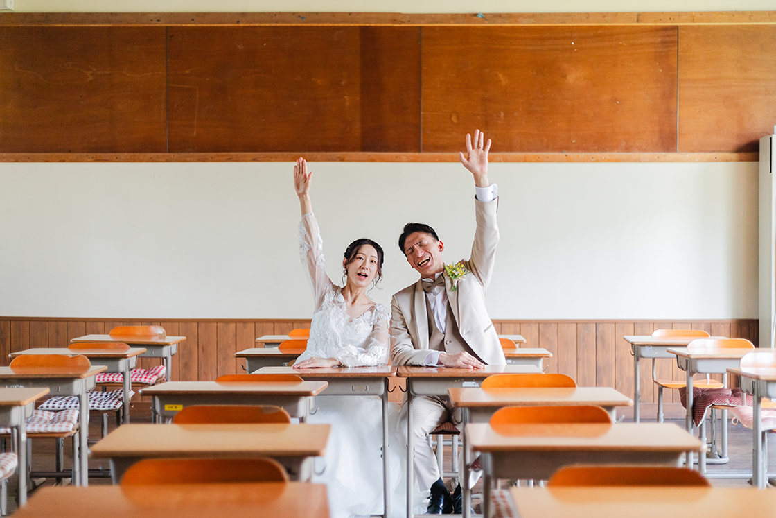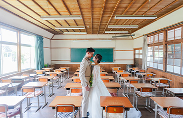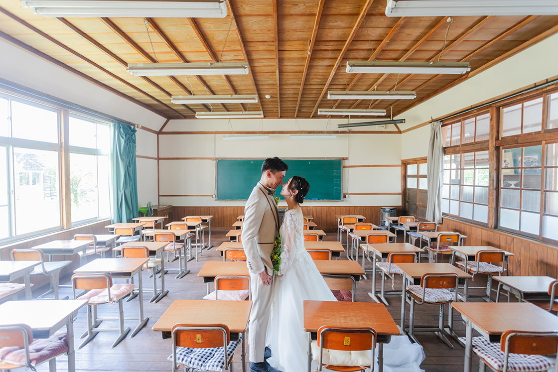 1935年に建てられた歴史ある旧宇太小学校。2013年にリニューアルし、今では多くの観光客でにぎわう観光名所となっています。レトロな雰囲気の教室や廊下など、衣装が映えるロケーションです。